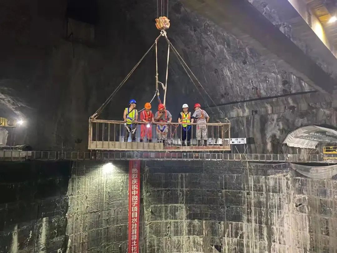 實(shí)驗(yàn)站深埋于地下,工程施工期作業(yè)面溫度高達(dá)30多攝氏度,濕度95%以上,同時(shí)遍布出水點(diǎn),人待在井下幾分鐘便會(huì)汗流浹背。現(xiàn)場(chǎng)的工程師卻全然不顧,常常站在齊膝深的水中進(jìn)行地質(zhì)測(cè)繪編錄,爬上幾十米的高空進(jìn)行儀器設(shè)備安裝和隱患排查,鉆進(jìn)密密麻麻的鋼筋網(wǎng)查看排水管安裝效果……