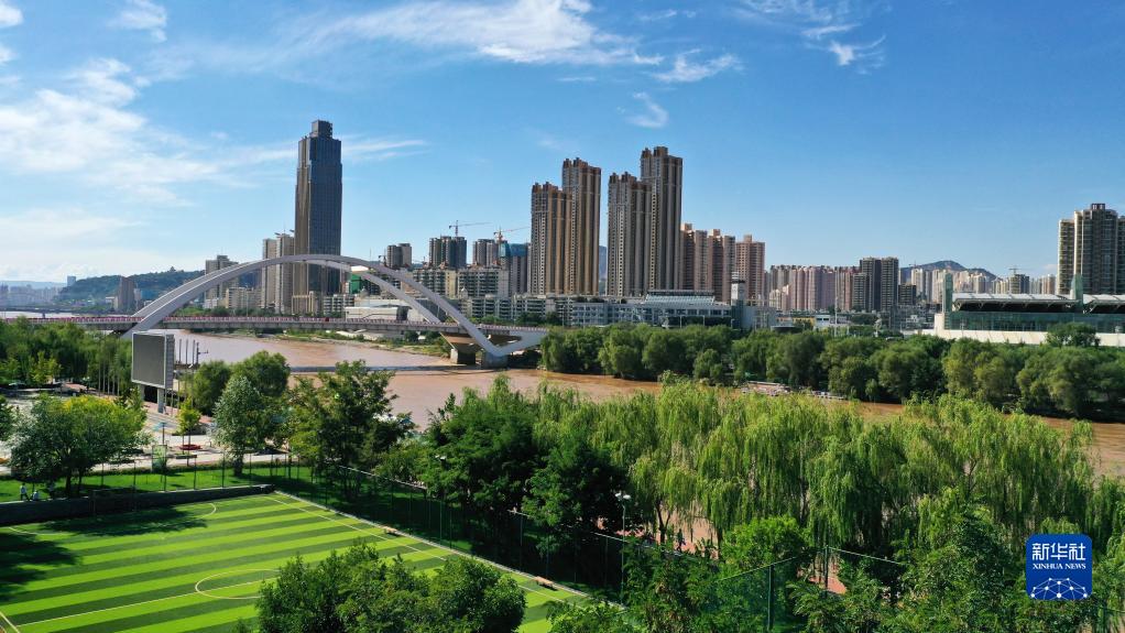 這是在甘肅省蘭州市拍攝的黃河兩岸城市風光(9月5日攝,無人機照片)。新華社記者陳斌攝