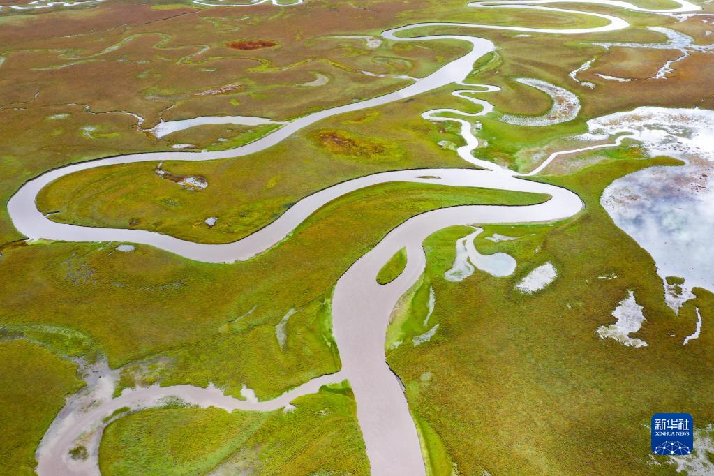 9月17日拍攝的阿萬倉濕地風光(無人機照片)。新華社記者郎兵兵攝