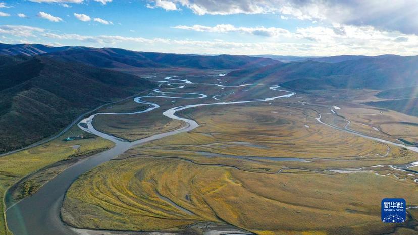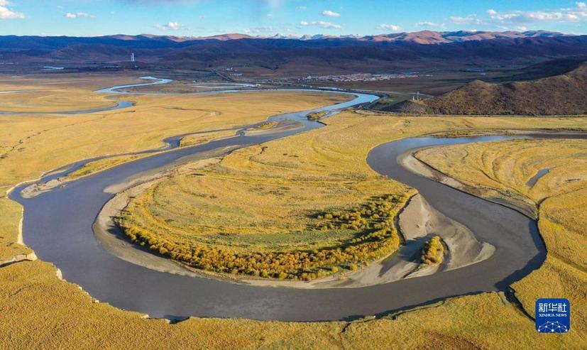 這是10月19日在四川省阿壩藏族羌族自治州若爾蓋縣拍攝的熱曲河(無人機照片)。新華社記者王曦攝