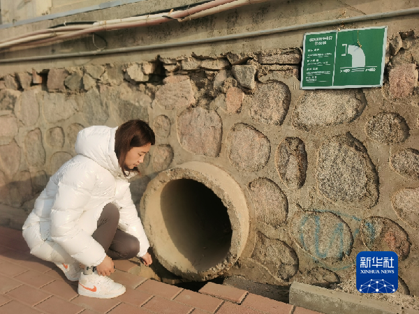 1月18日,楊璦禎在檢查黃河邊的雨洪排口。(新華社記者崔翰超攝)