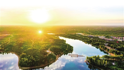 初夏的鄂爾多斯市康巴什區(qū),陽(yáng)光明媚,烏蘭木倫河碧波蕩漾,在陽(yáng)光照射下熠熠生輝。